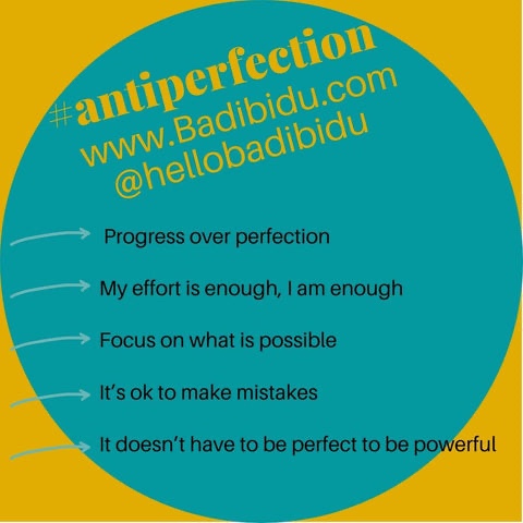 ‘So many of us are slowed down, are held back and put ourselves down seeking a standard of perfection that doesn’t have rules or a clearly-defined end point. We feel like we’ll recognise it when we get there but… honestly.. will we?? It holds a lot of people back from enjoying creating or sometimes from creating anything, and I’d love to be part of breaking down that barrier so kids and adults can enjoy art but these points apply to all parts of anyone’s life. Here are five ways your life will be improved by being slightly easier on yourself, not having no standards at all just not seeking totally unobtainable ones’….. this is so important…. Please visit www.BadiBidu.com
